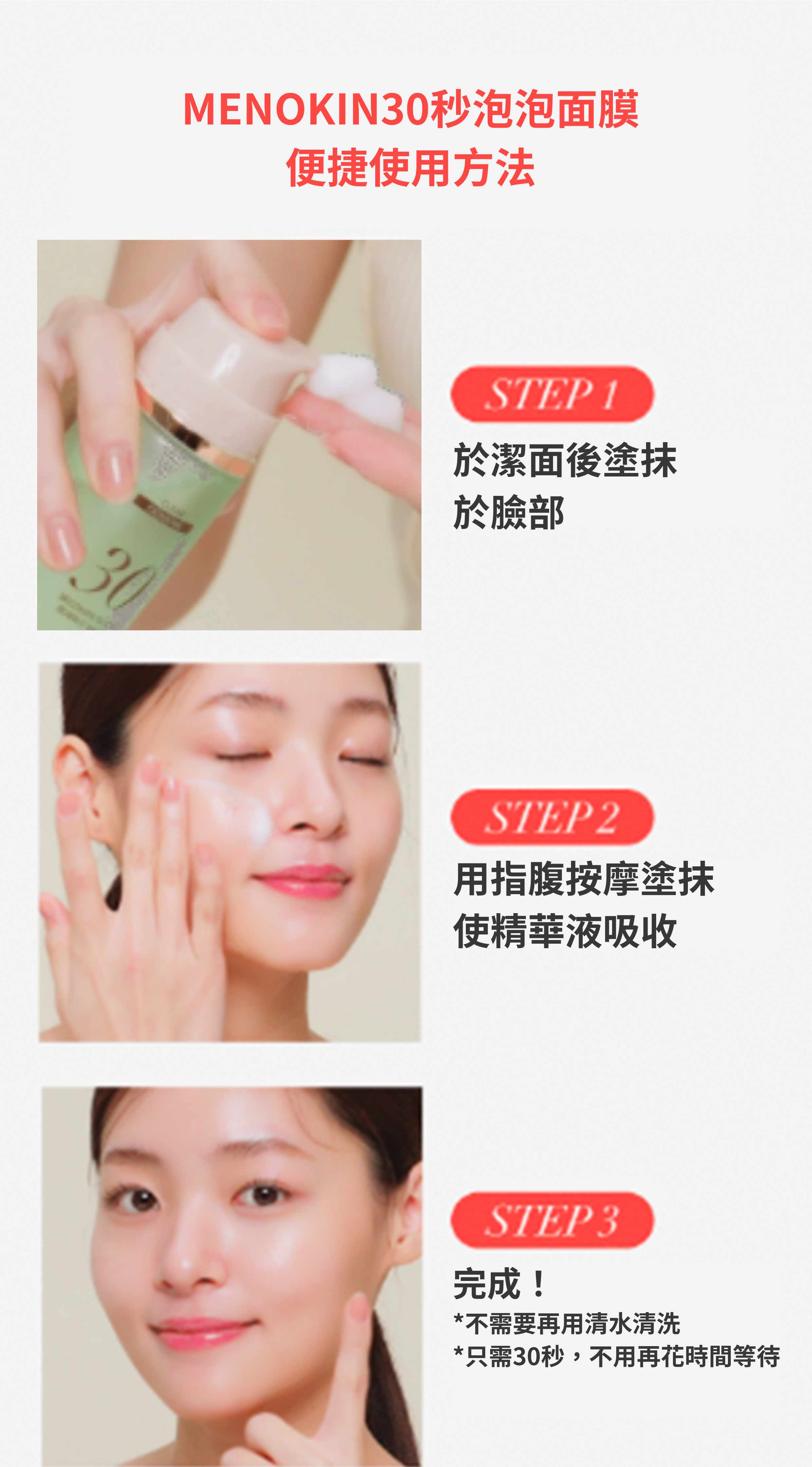 MENOKIN 30 秒免洗泡泡面膜 - 舒緩健康